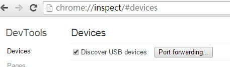 在Chrome中打开”chrome://inspect/#devices“,勾选”Discover USB devices“。