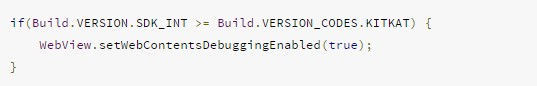 - 在PC Chrome”chrome://inspect“页面中看不到WebView页面信息:需要跟Android App人员确定获得的App是否开启WebView可调试。