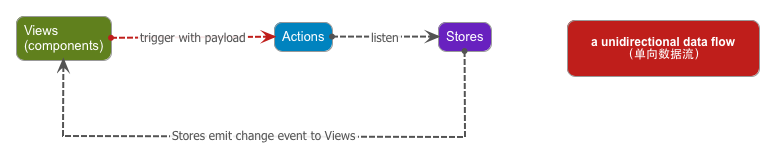 Flux作为一种应用架构(application architecture)或是设计模式(pattern),阐述的是单向数据流(a unidirectional data flow)的思想,并不是一个框架(framework)或者库(library)。