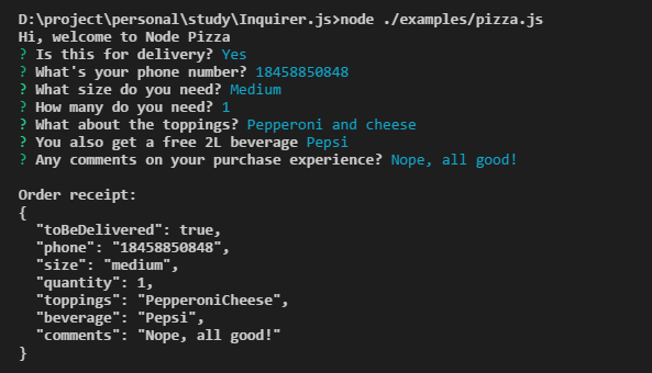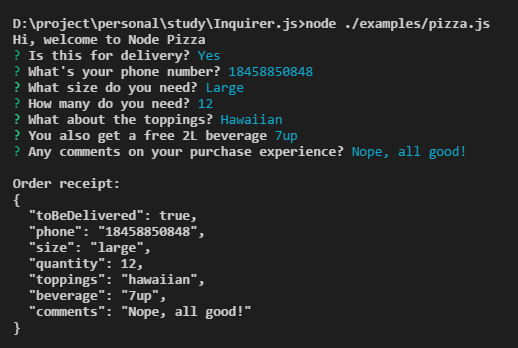 1 | npm install inquirer |
