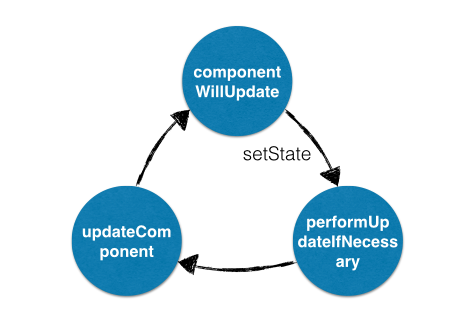 shouldComponentUpdate或componentWillUpdate中调用setState,此时的状态已经从RECEIVING_PROPS -> NULL,则performUpdateIfNecessary就会调用updateComponent进行组件更新,但updateComponent又会调用shouldComponentUpdate和componentWillUpdate,因此造成循环调用,使得浏览器内存占满后崩溃。