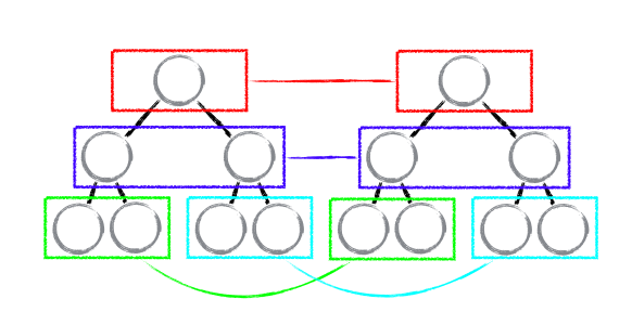 Web UI 中 DOM 节点跨层级的移动操作特别少,可以忽略不计。React 对树的算法进行了简洁明了的优化,即对树进行分层比较,两棵树只会对同一层次的节点进行比较。如下图所示: