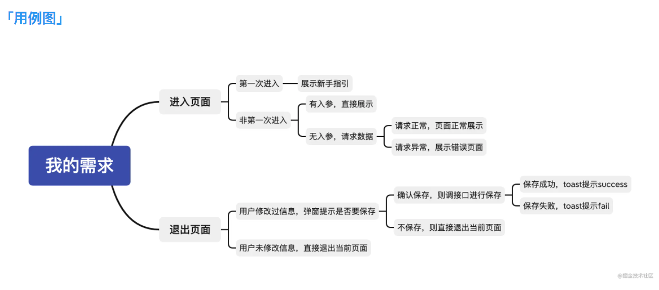 目的是为了在真正开始敲代码之前理清自己的思路,对需求有一个更清楚的认识,这样就不至于在开始开发后边写代码边思考了,想必你们都有遇到在写代码时突然发现哪一模块之前没考虑到,然后对之前写好的代码的架构进行调整,代码进行抽离,这无疑是在降低开发效率。