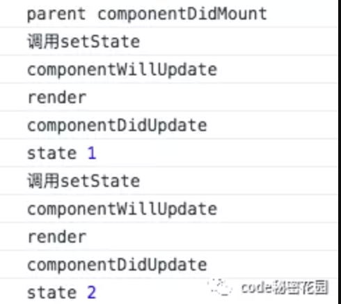 didmount后,父组件didmount,然后执行更新 - 3.更新时会把每个组件的更新合并,每个组件只会触发一次更新的生命周期。