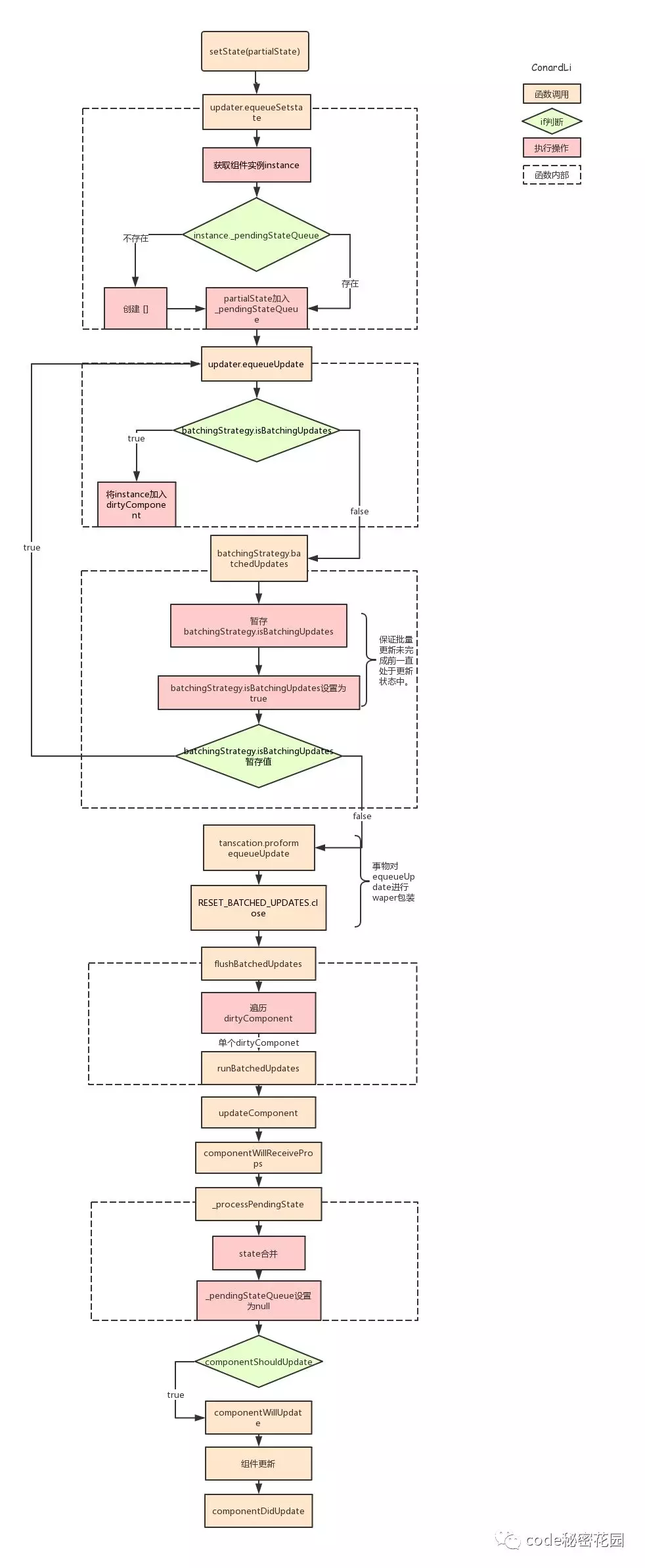 按照上述过程,这时无论调用多少次 setState,都会不会执行更新,而是将要更新的 state存入 _pendingStateQueue,将要更新的组件存入dirtyComponent。